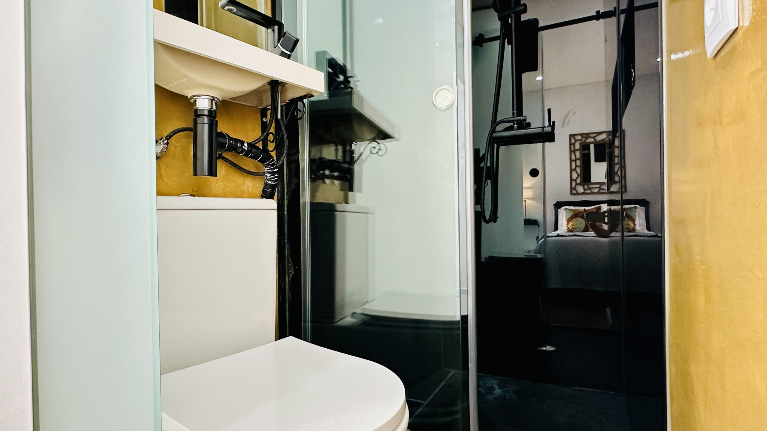 ZIMMER - 1 Zimmer en Suite mit Doppelbett, Wintergarten und privatem Badezimmer mit Dusche und 1 kleines Zimmer mit zwei Einzelbetten.