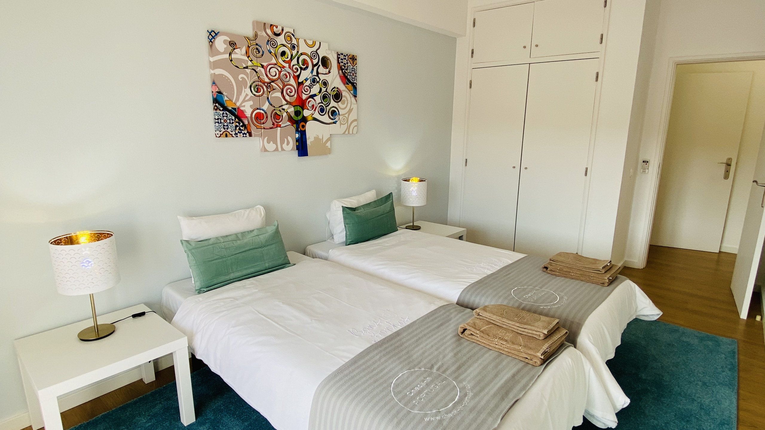 ZIMMER: Die Wohnung verfügt über zwei komfortable Zimmer. Das erste Zimmer bietet ein Doppelbett, während das zweite Zimmer mit zwei Einzelbetten ausgestattet ist. Beide Zimmer garantieren eine gemütliche Atmosphäre für eine gute Nachtruhe.