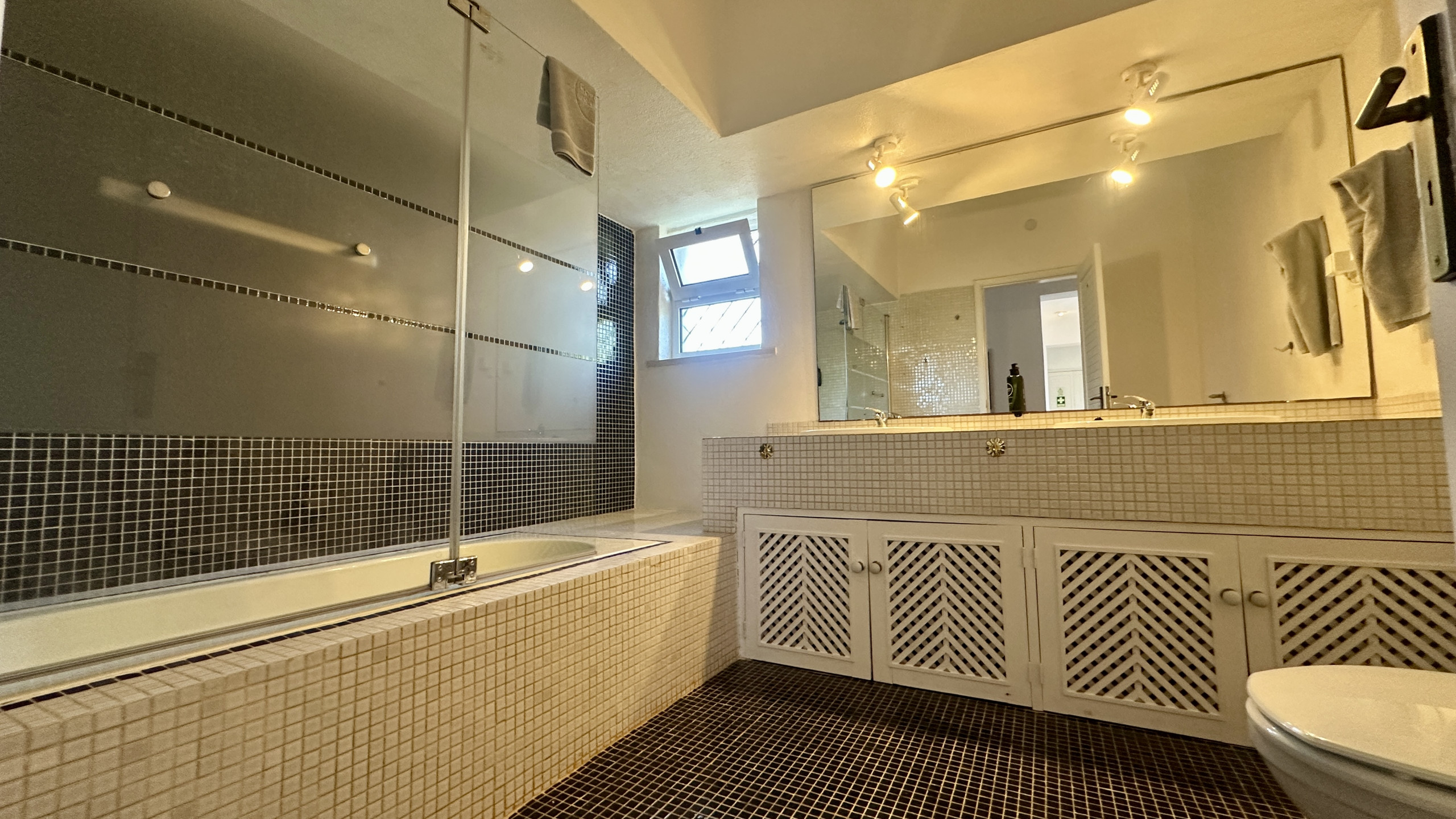 • Zusätzliches Zimmer mit Doppelbett, das sich am anderen Ende des Hauses befindet, mit Zugang zu einem Badezimmer mit Dusche, das auch als Gäste-WC dient