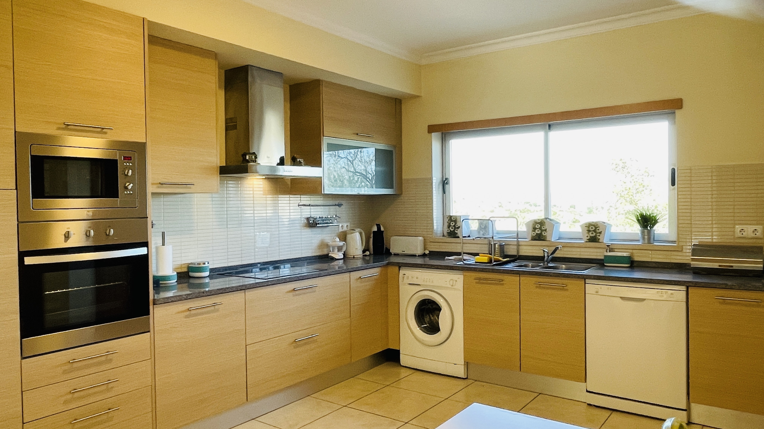 KITCHEN: The kitchen is independent and fully equipped with all modern amenities, including refrigerator, microwave, oven, washing machine, dishwasher, as well as essential kitchen utensils such as coffee maker, toaster and electric kettle.