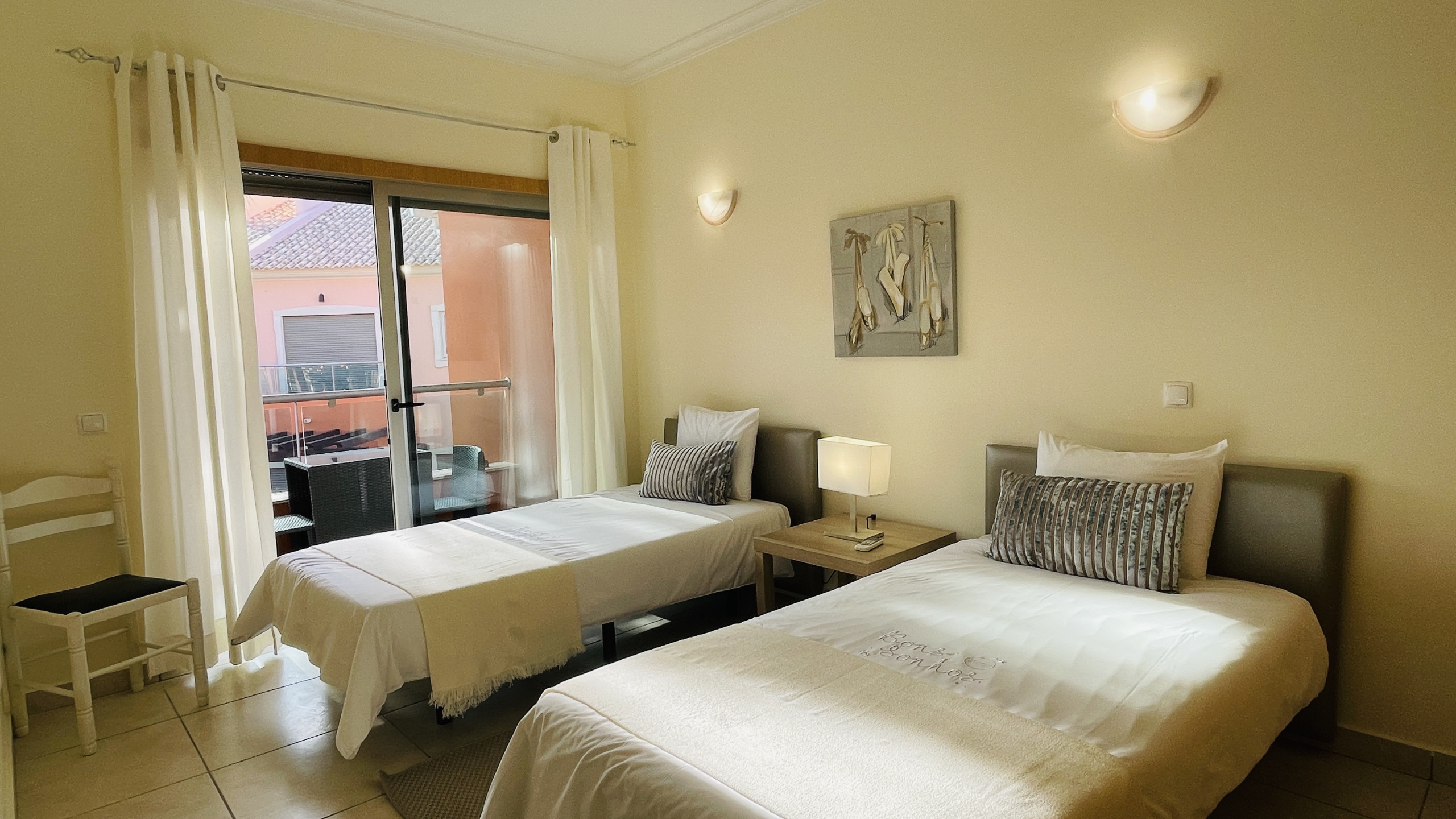 ROOMS: The house has three well-decorated rooms. The main bedroom includes a spacious double bed and an en-suite bathroom. A second bedroom also has a double bed and access to a private balcony, while the third bedroom is equipped with two single beds and its own private balcony.