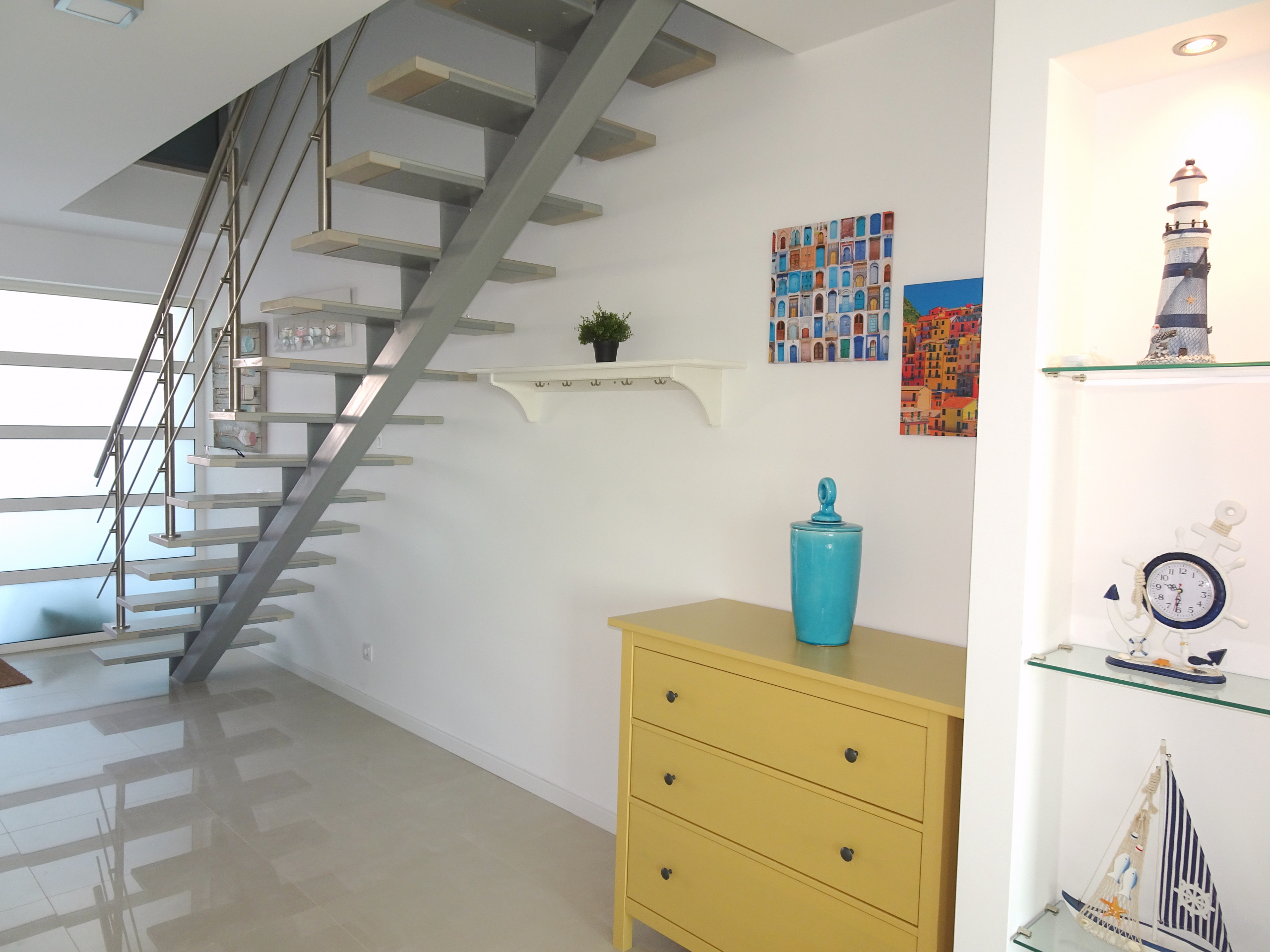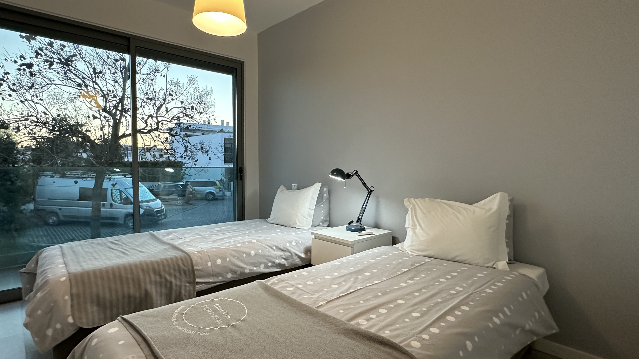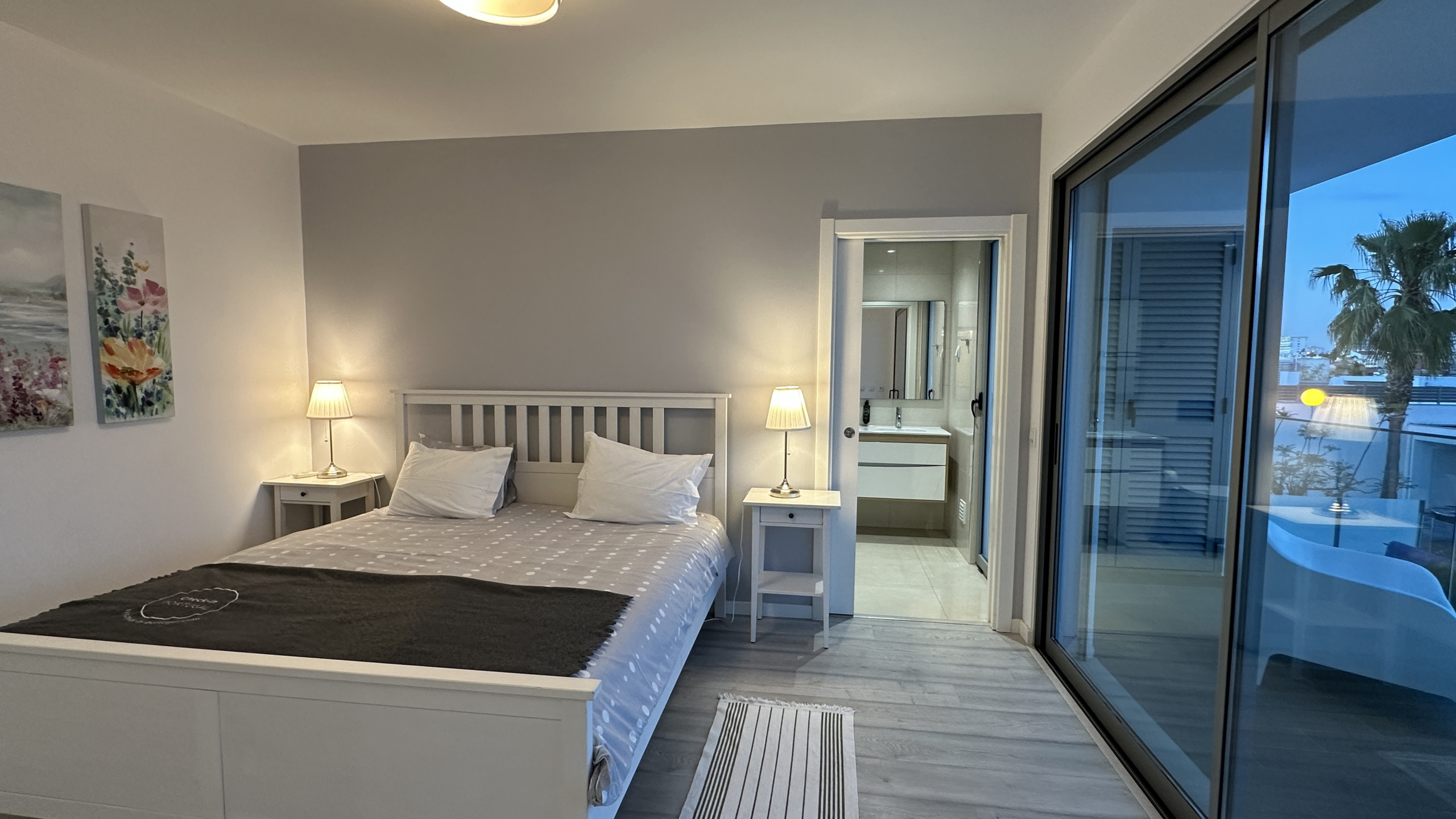 The modern and light decoration creates a welcoming and familiar environment — perfect for resting after a day at the beach or exploring the region.