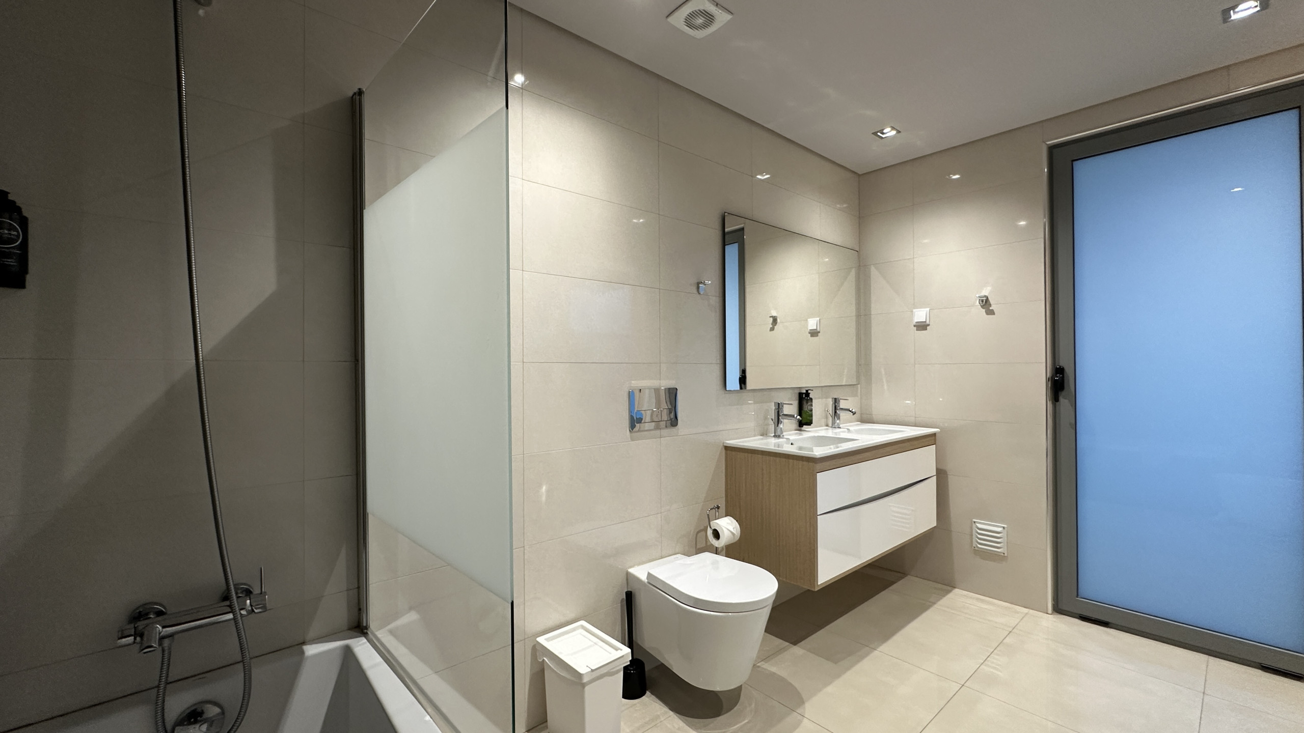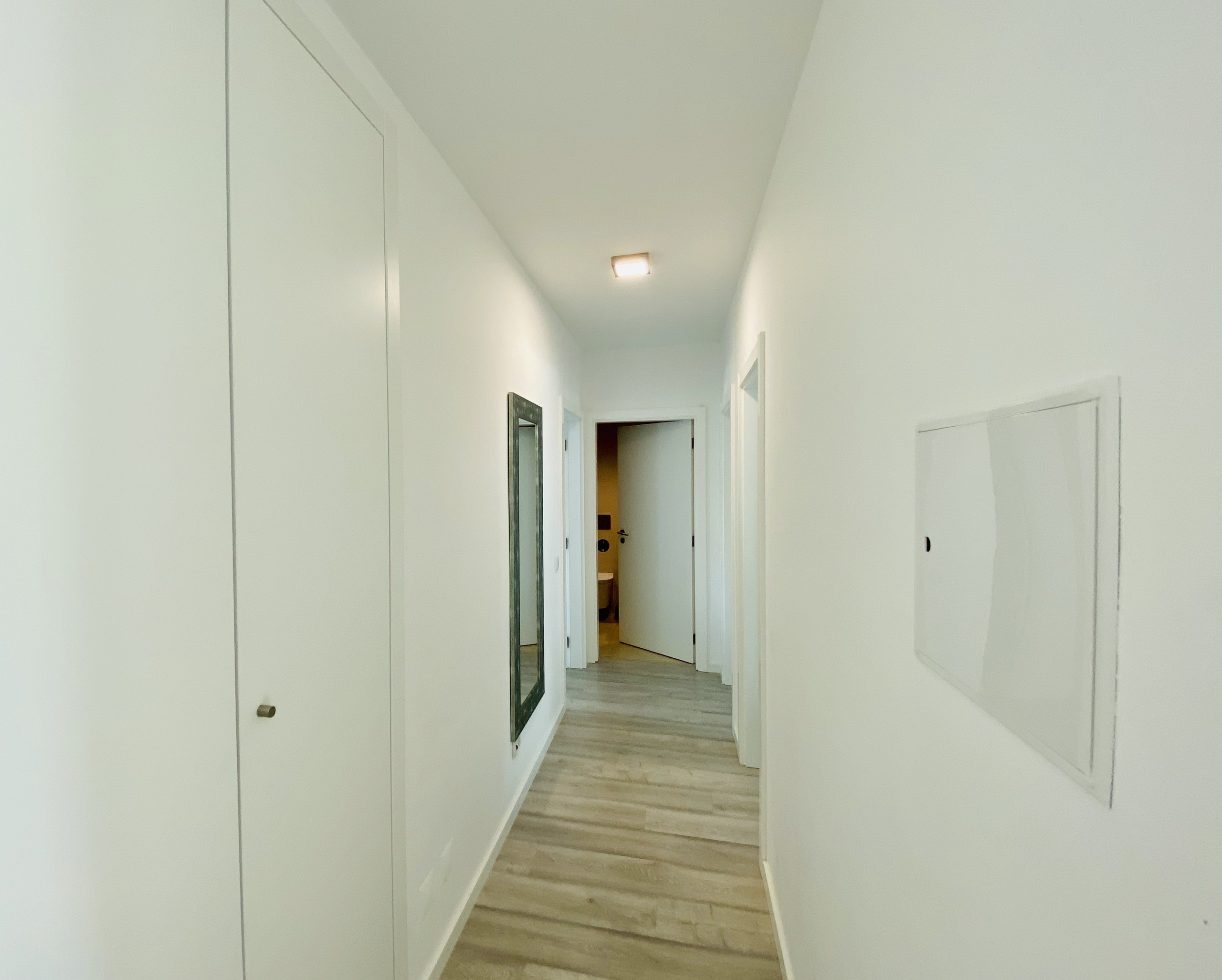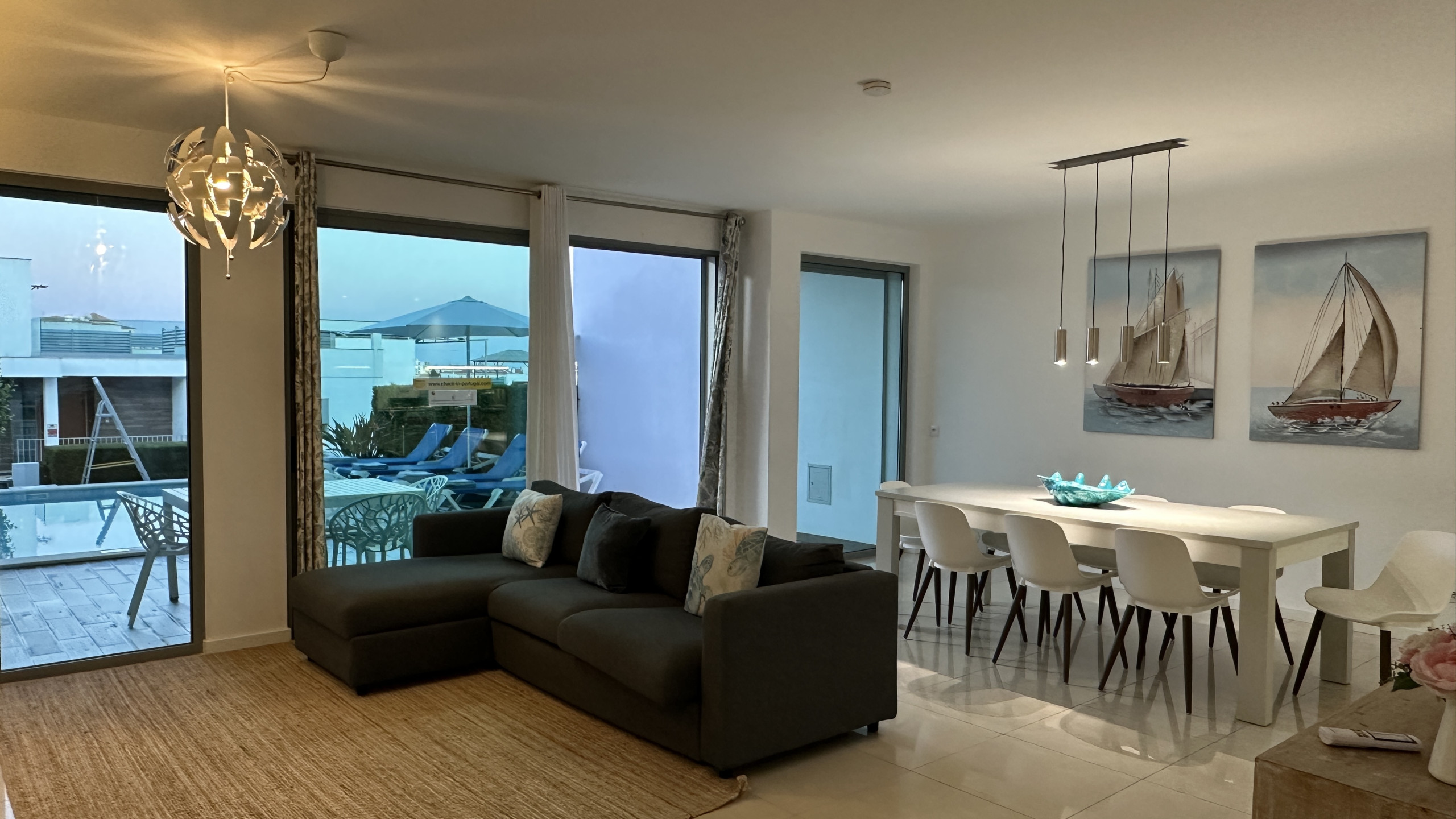 The modern and light decoration creates a welcoming and familiar environment — perfect for resting after a day at the beach or exploring the region.