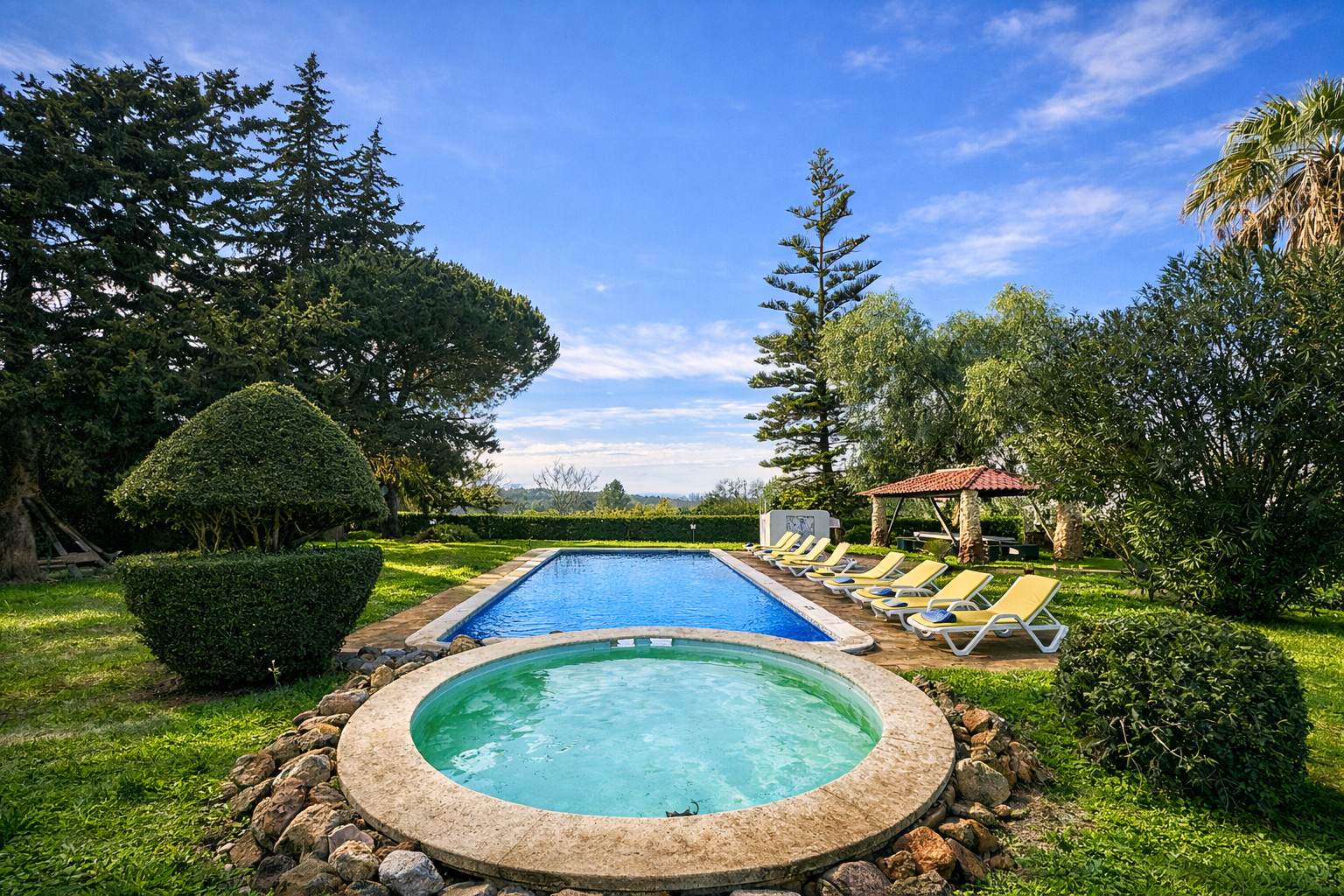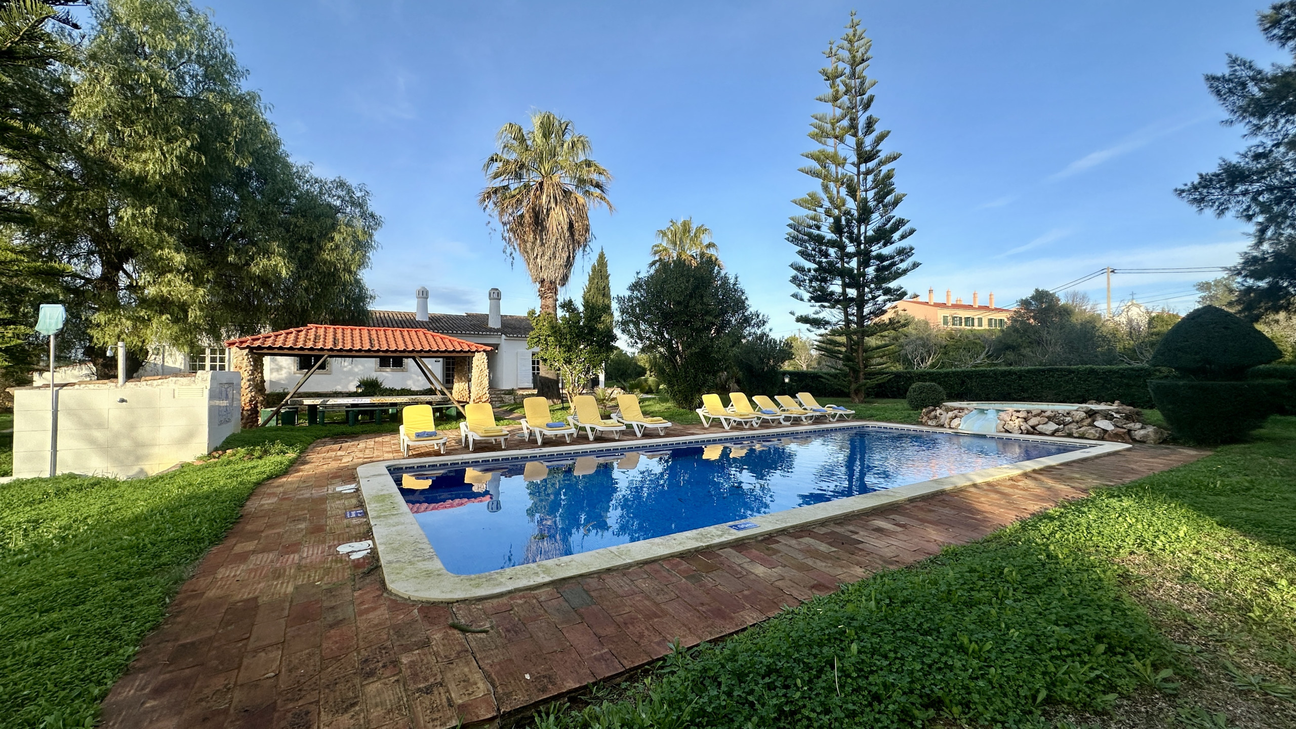 • Covered barbecue area, with fixed table and direct view of the pool, ideal for long gatherings