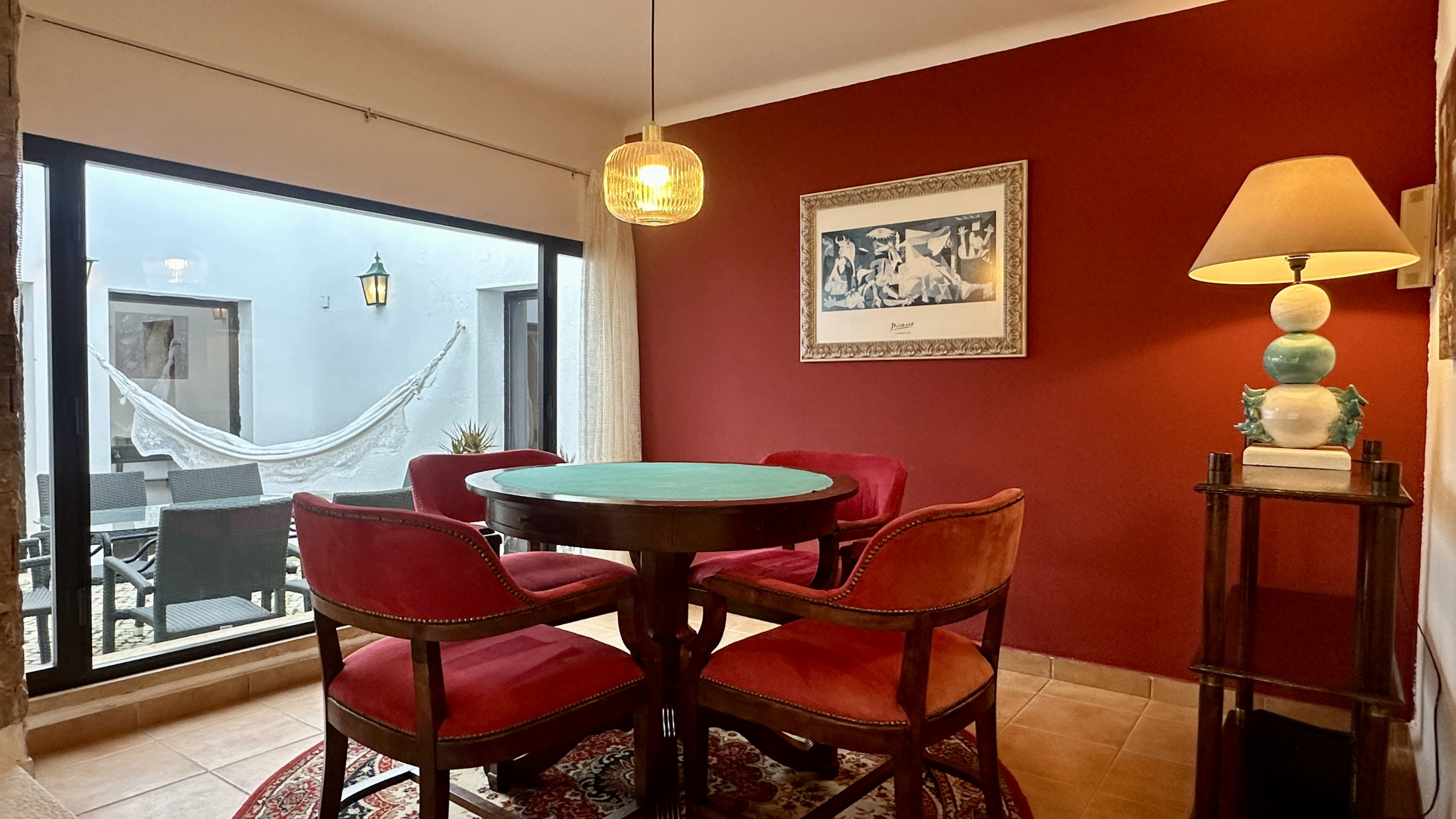 • An elevated space in the living room, equipped with a special table for games like bridge or canasta