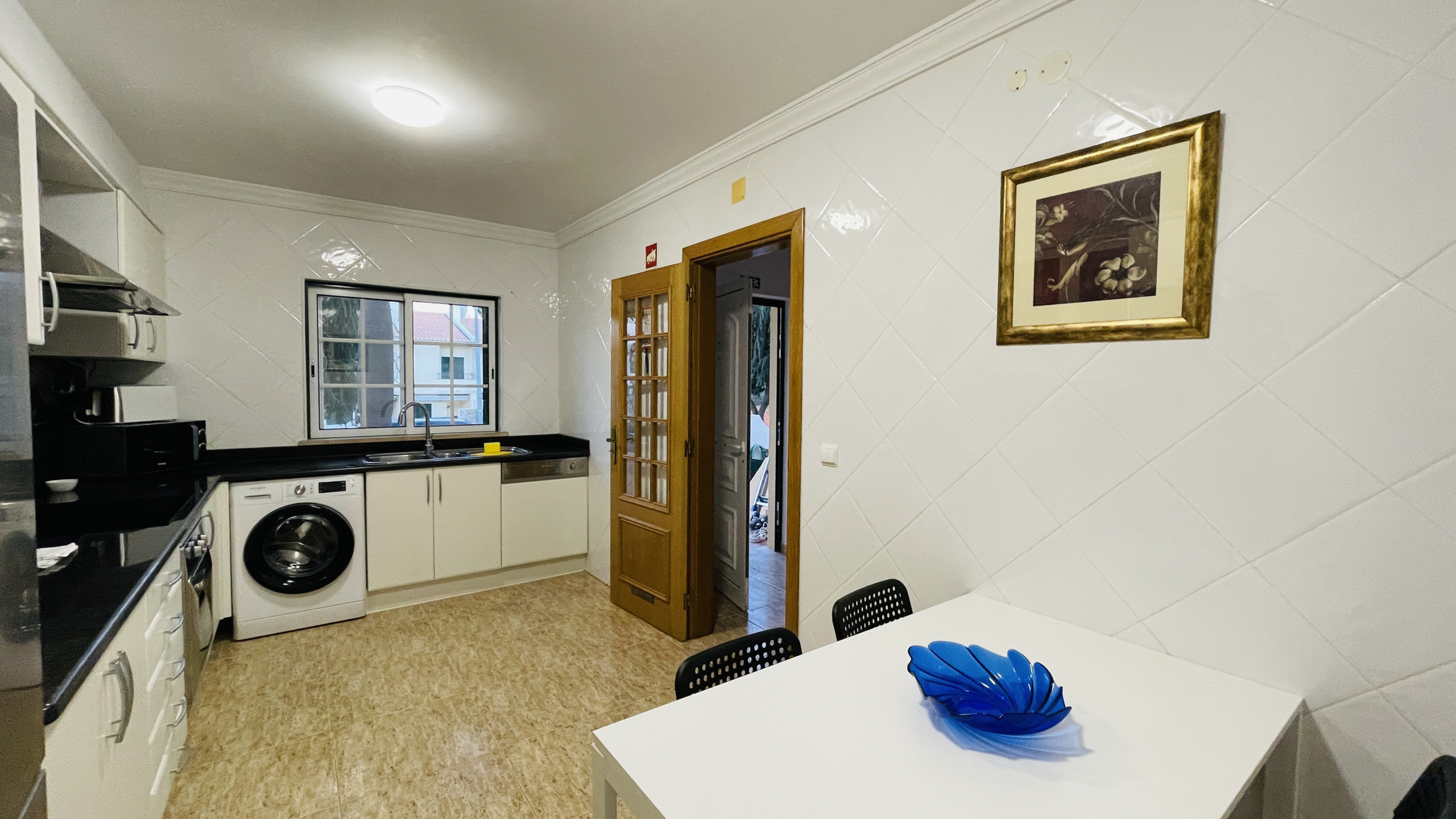 Adjacente à cozinha, a lavandaria oferece uma máquina de lavar roupa e um frigorífico grande. Também há acesso a uma área de churrasco coberta, perfeita para preparar e desfrutar de refeições ao ar livre.