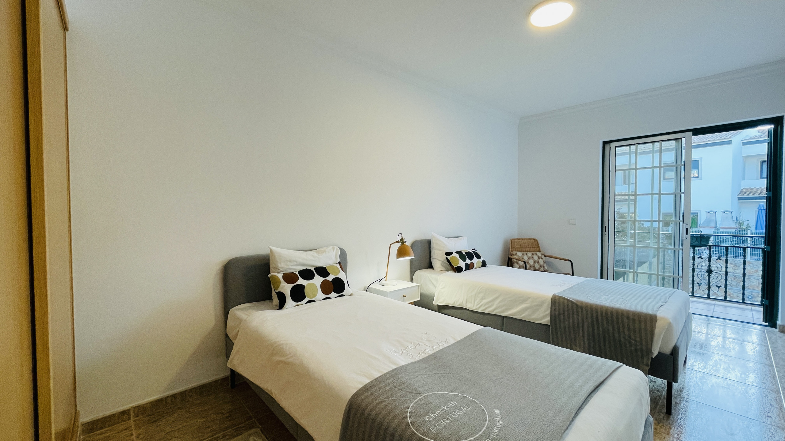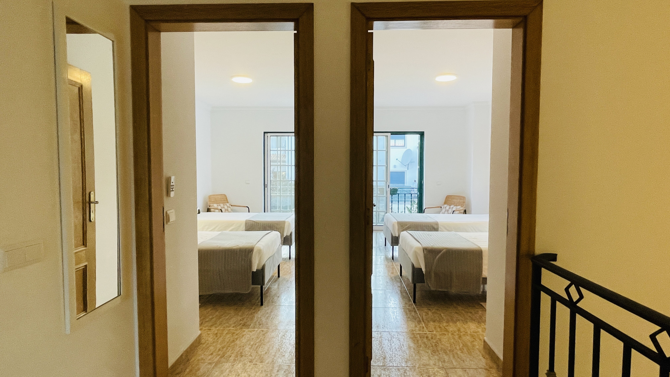 La villa est composée de trois chambres confortables, pouvant accueillir jusqu'à 8 personnes. La suite principale dispose d'un lit double et d'une salle de bain privative pour plus de confidentialité. Une deuxième chambre dispose également d'un lit double et d'un balcon privé, tandis que la troisième chambre a deux lits simples et un balcon privé, idéal pour profiter de la brise de l'Algarve.