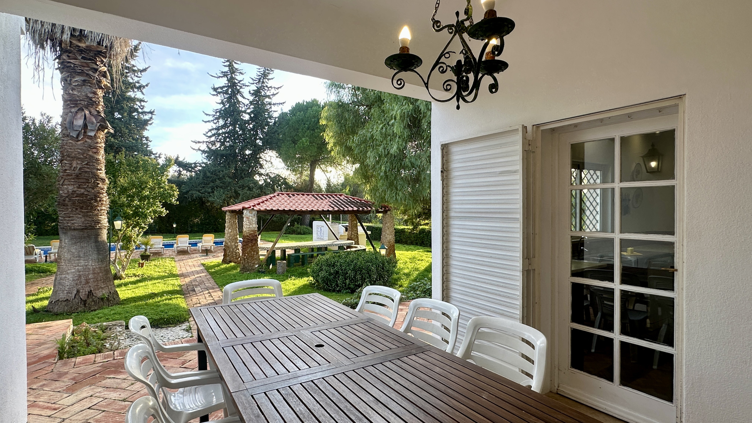 • Zone de barbecue couverte, avec table fixe et vue directe sur la piscine, idéale pour de longues réunions