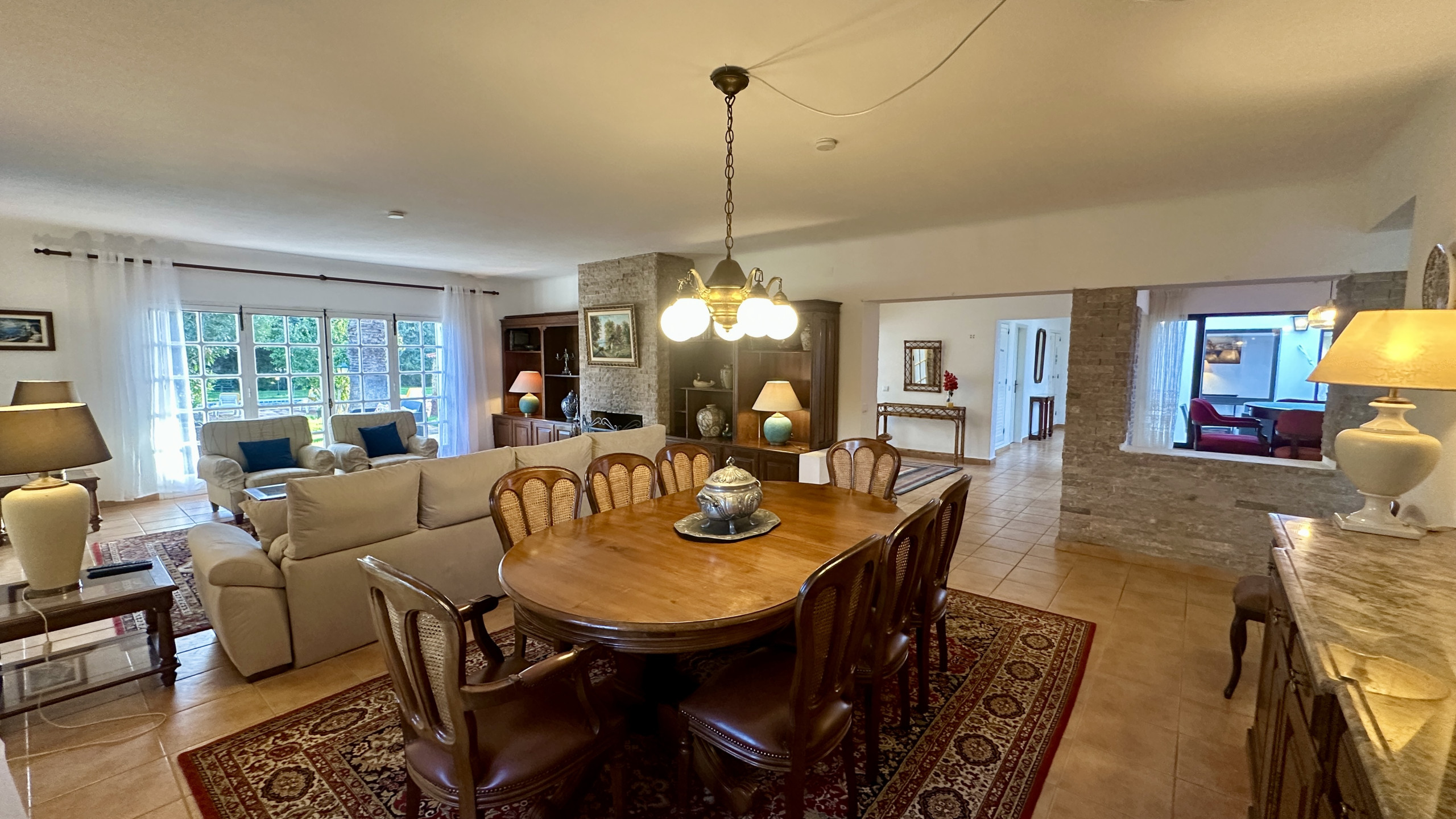 • Salon très spacieux, avec cheminée, idéal pour les journées plus fraîches