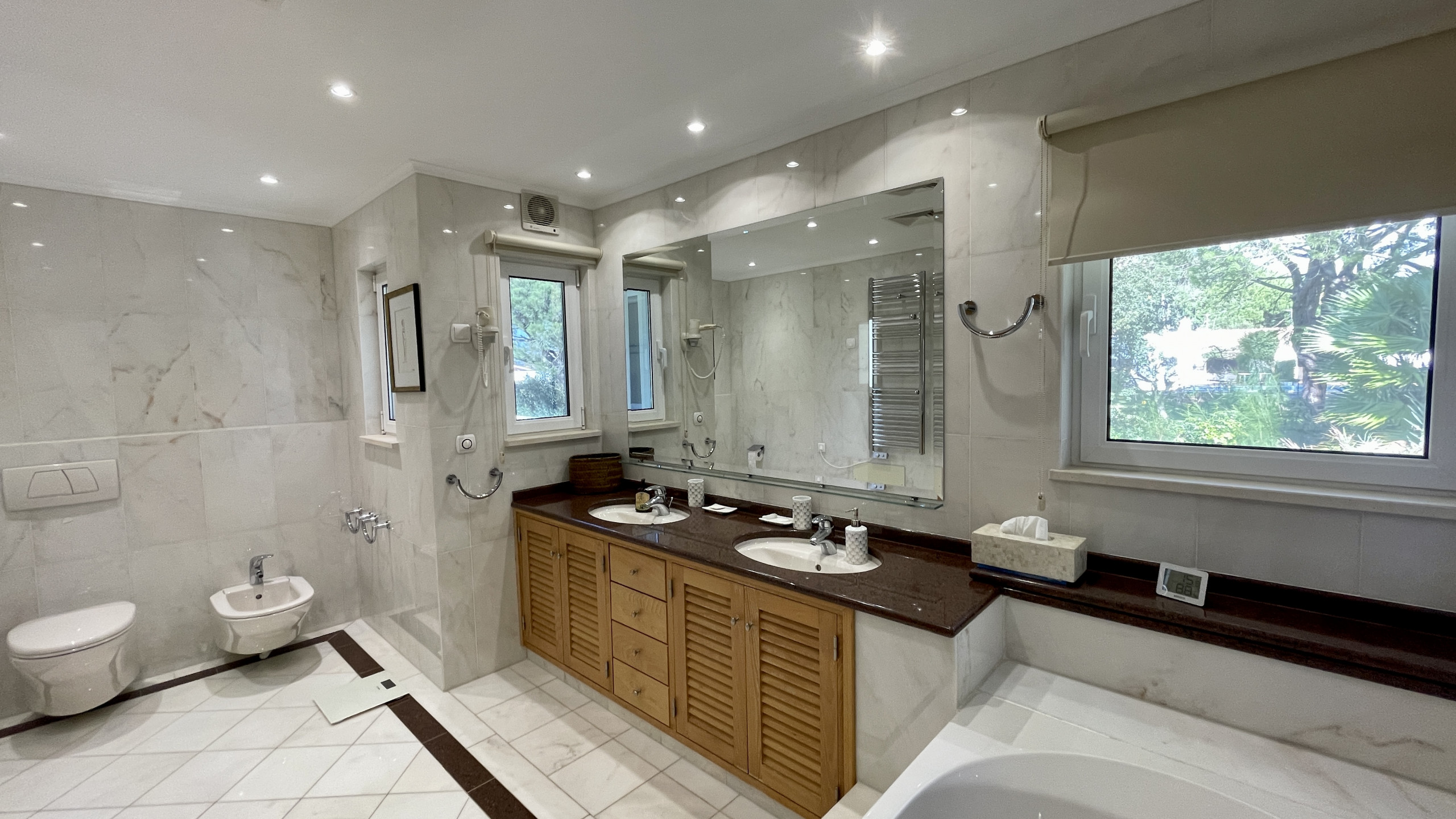 The villa is huge with 5 ensuites and 6-1/2 bathrooms. It was well stocked with towels which were replaced with fresh towels every 3 days. Customer service was excellent.